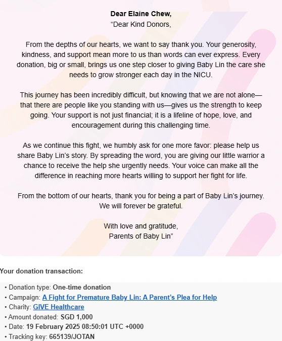27/09/2025 Lastest Donation Singapore SGD 70,057.28 more